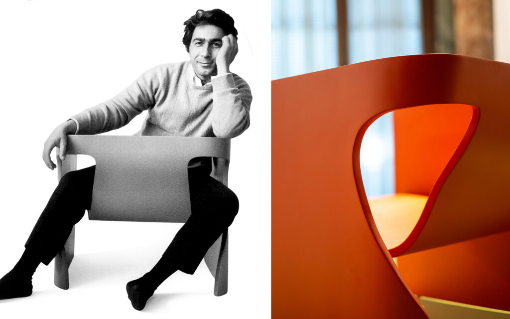 La muestra llevó meses de largas charlas entre el autor y los curadores, Sandra T. Hillar y Wustavo Quiroga. Juntos, eligieron piezas de mobiliario, alfombras icónicas, cristalería, textiles y obras inéditas, como los cuadros que rodean a uno de sus hitos, el sillón Cinta. Desarrollado entre 1968 y 1969 y realizado en madera laminada curvada, su estructura continua unifica asiento, respaldo y apoyabrazos. El Cinta forma parte de la colección permanente del Victoria & Albert Museum de Londres y del MoMA de Nueva York. En 2024 integró la exposición “Crafting Modernity: Design in Latin America, 1940–1980”. Y no deja de sorprender: por su resolución que esconde las costuras y por su lenguaje geométrico que sigue vigente.