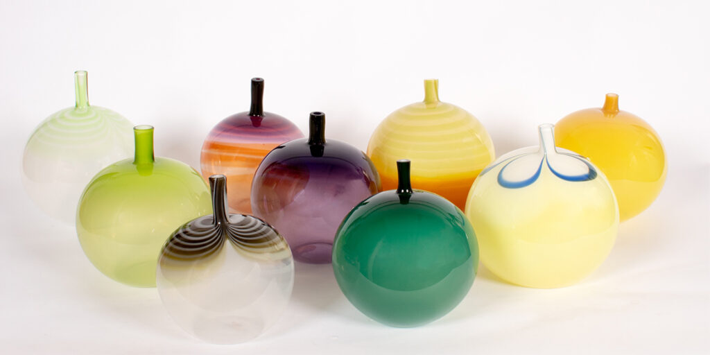Los vidrios, irrepetibles, condensan una alianza excepcional con la artesanía. Piezas de la Colección Satsch Gallery. Gentileza: Satsch Gallery.