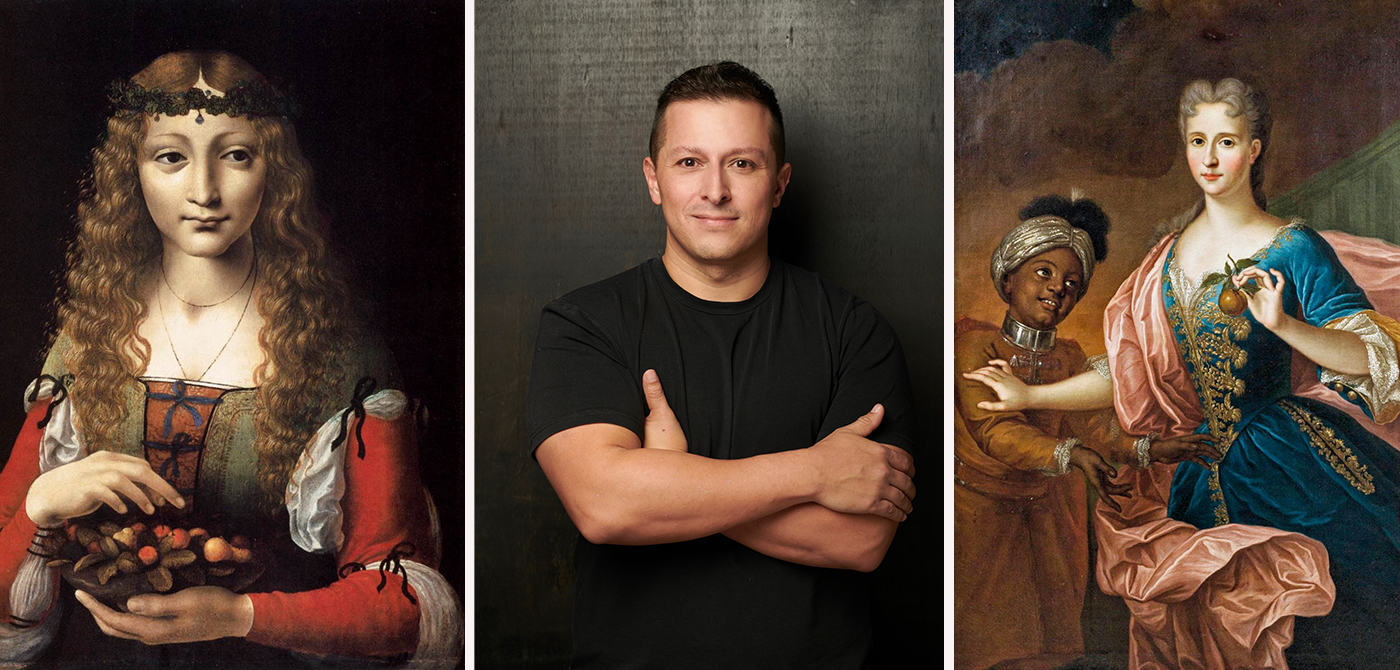 Fotos de portada: Izq. Este retrato, atribuido al pintor lombardo Marco d’Oggiono, discípulo directo de Leonardo da Vinci, muestra a una joven niña sosteniendo cerezas, un motivo simbólico y afectivo común en la iconografía renacentista. La obra fue realizada entre 1491 y 1495, en los años en que Oggiono trabajaba activamente en el taller de Leonardo en Milán. Imagen de dominio público/ Centro: Federico Kukso. Foto Alejandra López, Gentileza Penguin Random House Argentina./ Der. El "Portrait d’Élisabeth L’Hermite d’Hieville, maréchale de Montesquiou d’Artagnan" es una obra atribuida al pintor francés Hyacinthe Rigaud (1659–1743), uno de los retratistas más importantes del reinado de Luis XIV. Rigaud fue reconocido por su habilidad para plasmar con gran riqueza de detalles la vestimenta, los gestos y la posición social de sus retratados, generalmente miembros de la nobleza y la alta burguesía. Imagen de dominio público.
