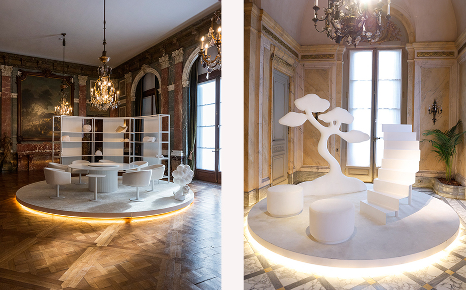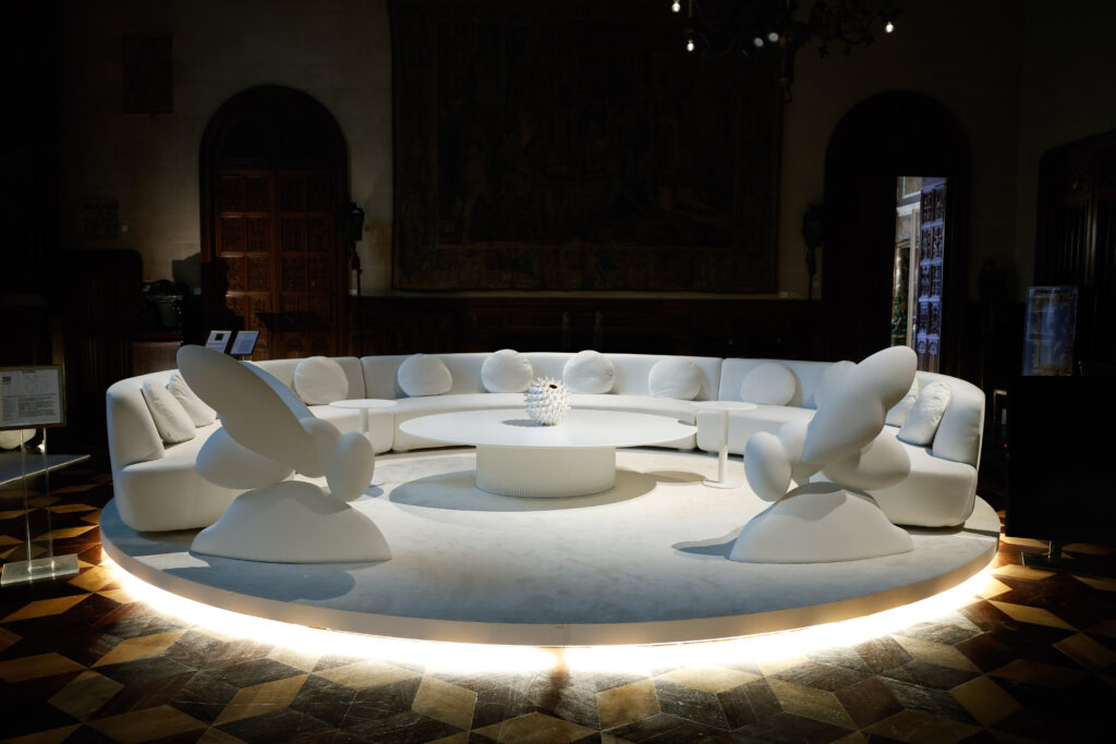 Si sus locales de muebles, accesorios y equipamiento para la casa siempre se distinguieron por las texturas cálidas, lisas y una paleta de colores que jugaba con tonalidades sutiles de blanco, esta exposición no hace más que reforzar ese ADN. Desde la fachada, el hall, el Salón Principal y el Salón de Baile, el recorrido invita a reflexionar sobre los ciclos vitales. Y lo hace a través del diseño y la transformación del espacio, desde la iluminación escenográfica y los detalles sutiles, que se adivinan entre capas de sentido.