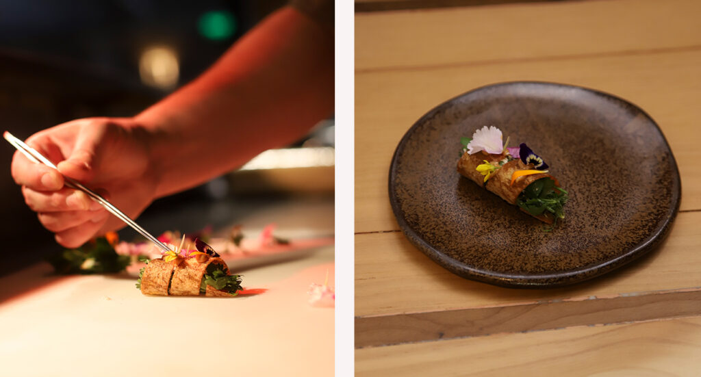 El menú está en constante cambio, siempre con nuevas propuestas y creaciones que transmiten delicadeza y equilibrio entre sabores. Foto: Rodrigo Mendoza, gentileza Raix.