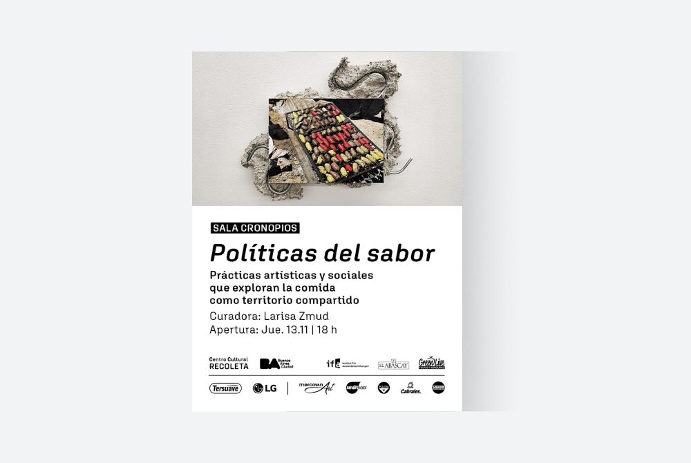 El Centro Cultural Recoleta (CCR) presenta en Cronopios, su sala principal, la muestra colectiva “Políticas del sabor”, curada por Larisa Zmud, proponiendo una exploración por el universo de la cocina como territorio político y poético donde arte, feminismos y prácticas comunitarias se entrelazan para imaginar modos de vida sostenibles.