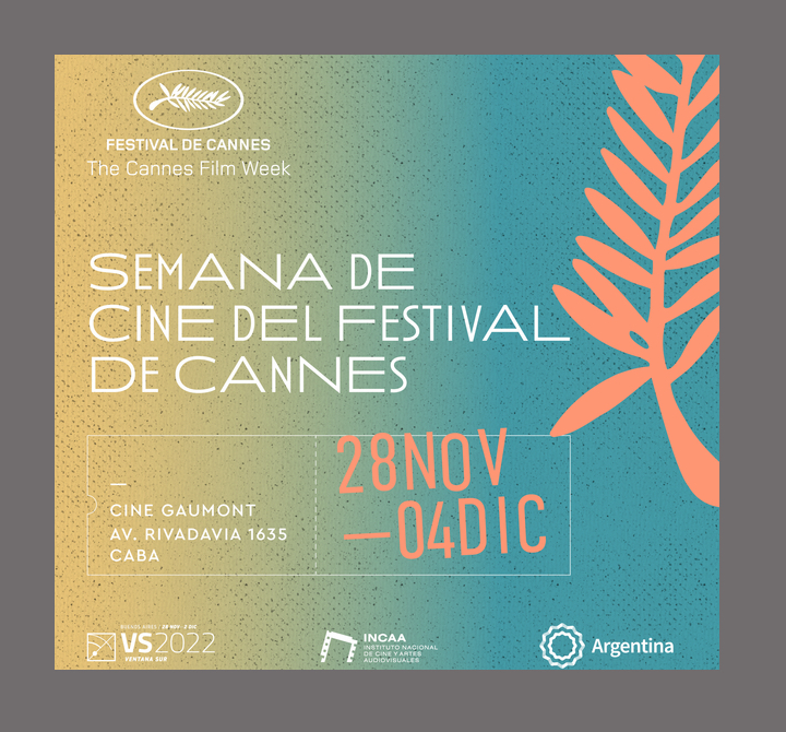 El Instituto Nacional de Cine y Artes Audiovisuales (INCAA) y el Marché du Film del Festival de Cannes presentan, en paralelo a la 14ª edición del mercado audiovisual Ventana Sur, la Semana de Cine del Festival de Cannes, que se realizará en el Cine Gaumont del 28 de noviembre al 4 de diciembre.