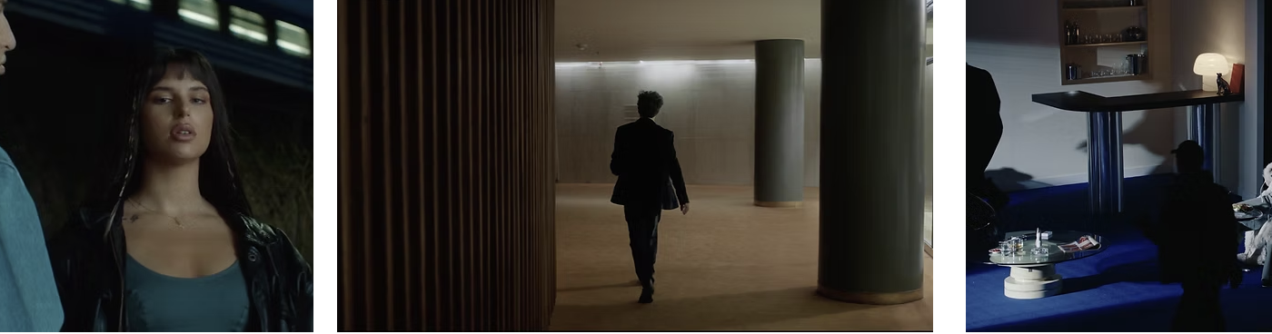 Algunos de los videos en los que se destacó como directora de arte. Izquierda: ¨Baño María“ Ca7riel & Paco Amoroso, dir. Pantera, prod. Obra,. “En este caso particular, muchas de las fotos que saqué se terminaron usando en el BTS para toda la promo del disco. Estuve en la presentación en el Lollapalooza y en otras instancias”, recuerda Valentina. Centro: Trueno ft. J Balvin, dir. Lucas Vignales. Derecha: Ateph Elidja, “Burn October” Dir: Wacho, Prod Pantera. Gentileza Valentina Luppino