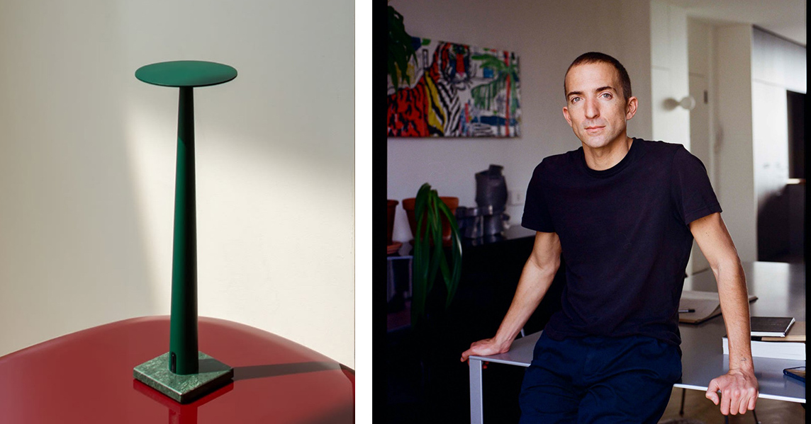 Foto de portada: Izquierda: Portofino, lámpara de mesa portátil y super delgada en aluminio y mármol, para Nemo (2023). Ph: Alberto Strada. Derecha: Valerio Sommella.